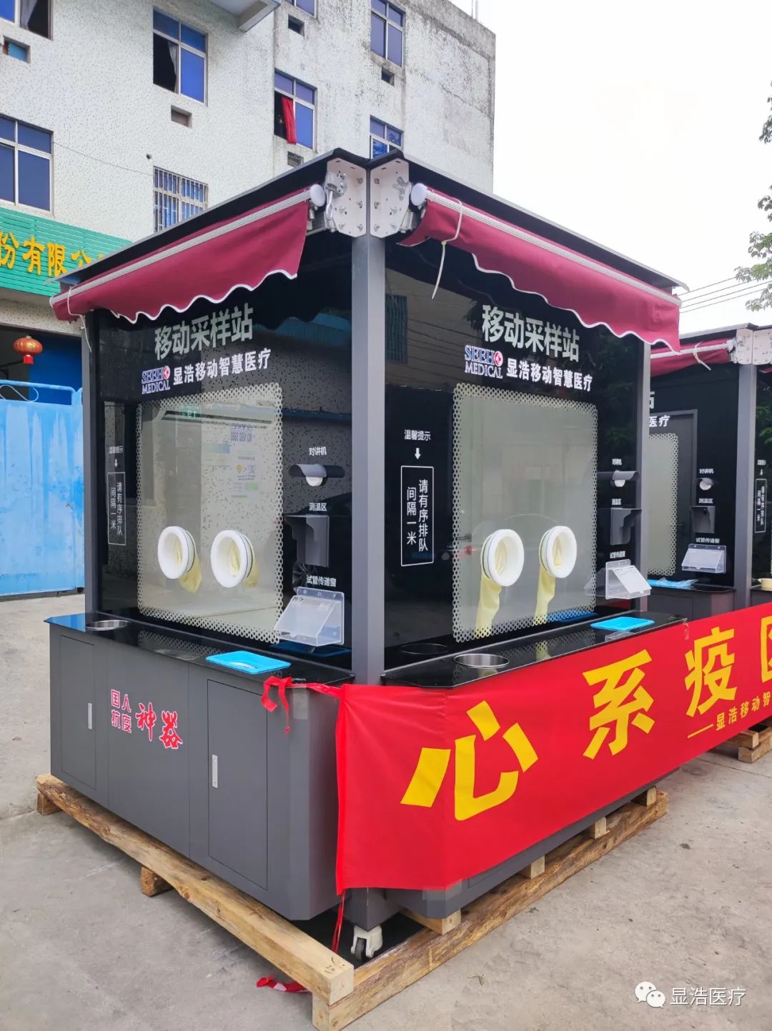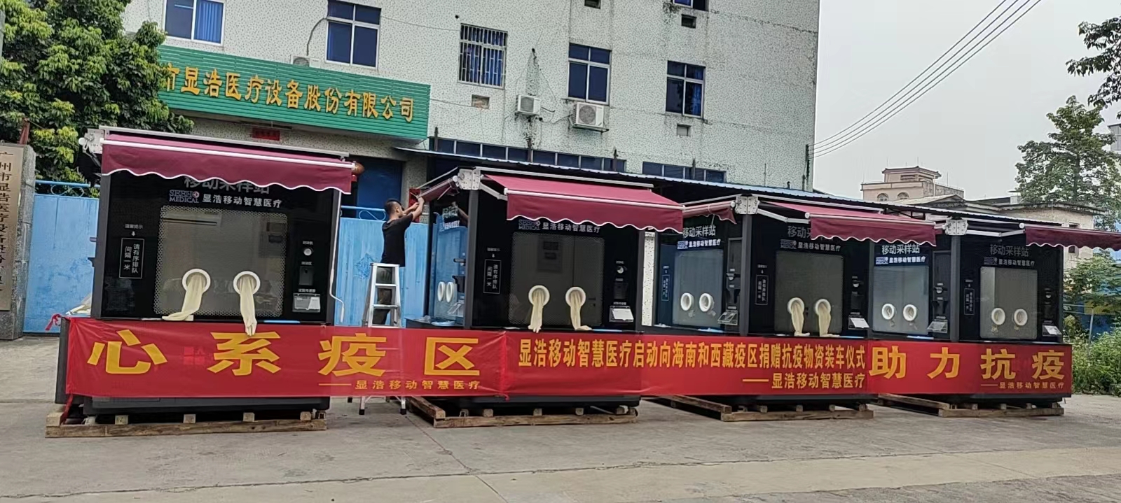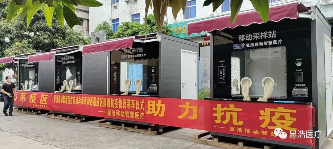 北显浩医疗装备科技有限公司营运总监蒋存金介绍,此次捐赠的核酸检测亭是公司员工加班加点赶制,配备有自动对讲、测温等装备,安装新风空调系统,可以保证检测亭内工作环境的零污染。在完成核酸检测工作之后,它还可以转化为执法亭、早餐售卖点、休息室等形态,继续发挥功用
