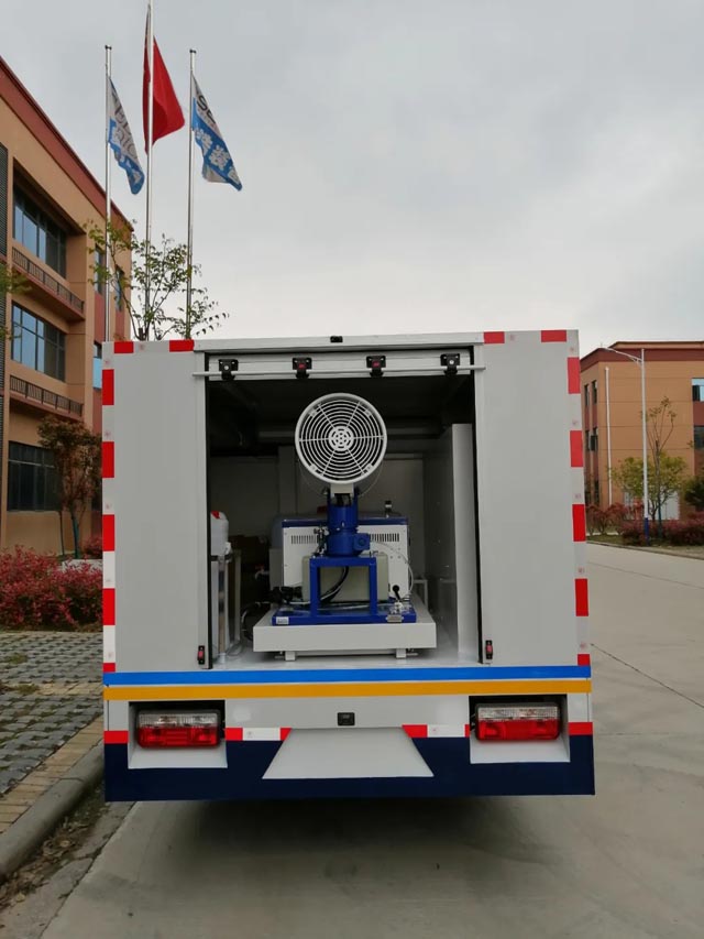 用于消杀室外环境的细菌,病毒,和蚊蝇等媒介昆虫。车内配置超低容量喷雾机、常量喷雾机等设备??上敬砻婊海?00㎡可连续反复充装;杀虫处理面积:2500—100000㎡。