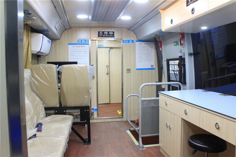 打开DR体检车上门的开关。接通电源,启动控制台闭合按键,摄片功能就可以打开使用了。