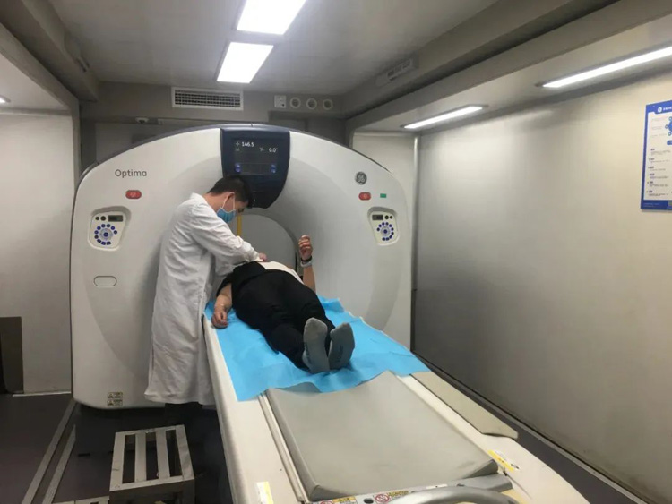 胸部CT检查对于危重症的鉴别非常重要。如果血氧饱和度低到一定程度,我们的大脑中枢会感知并出现代偿反应?;嵬ü銮亢粑硕黾友跗闳?,因此会感到气急、胸闷,老年人可能会反应迟钝、意识模糊。此外,嘴唇、指甲都可能出现紫绀。降低居民朋友交叉感染的风险,提升疾病筛查的能力,缓解CT影像的资源紧缺,移动CT车开进社区,对于部分患者,特别是有基础疾病,如老年人,慢阻肺、支气管疾病、肺癌、心衰、肾衰的患者,要特别小心,可能会出现危重症,这时候上移动CT车做个肺部CT就非常有必要。