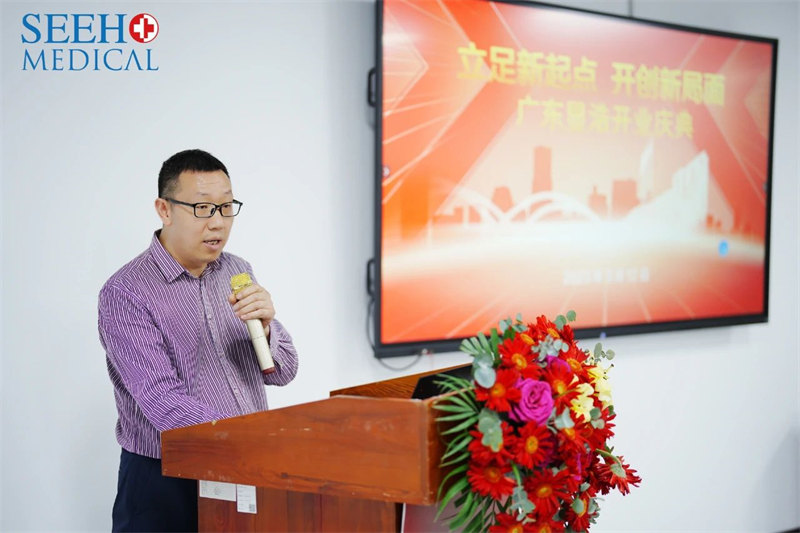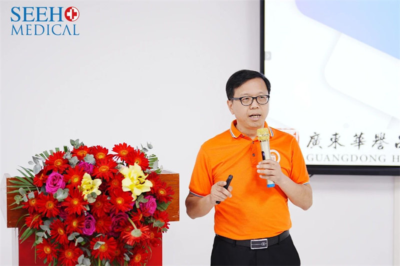 开业典礼当天,广东显浩装备科技有限公司还安排了一场合作伙伴们期盼已久的新产品发布会,由产品经理许耀文做新产品介绍。