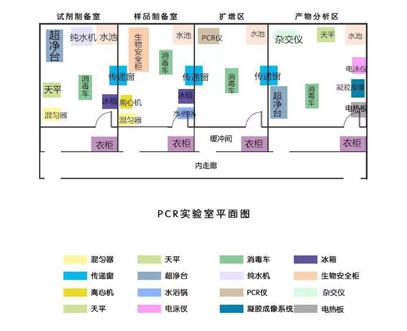 移动PCR实验室中配备了基本实验设备和条件符合实验室标准改装,实验室里面负压状态,单向风流,避免交叉感染。配备生物安全柜的强毒作业间,缓冲室和更衣室??梢园踩闶笛槿嗽钡募觳???掌讼低?,可以达到99%以上。保证内部的空气清洁度。冷暖空调系统保证实验室温度处在恒温状态。实验室里面的空气需要经过灭菌高效过滤才能排出室外。所有污物都必须经过高压灭菌锅灭菌后方可带出室外?;繁2晃廴就饨?。